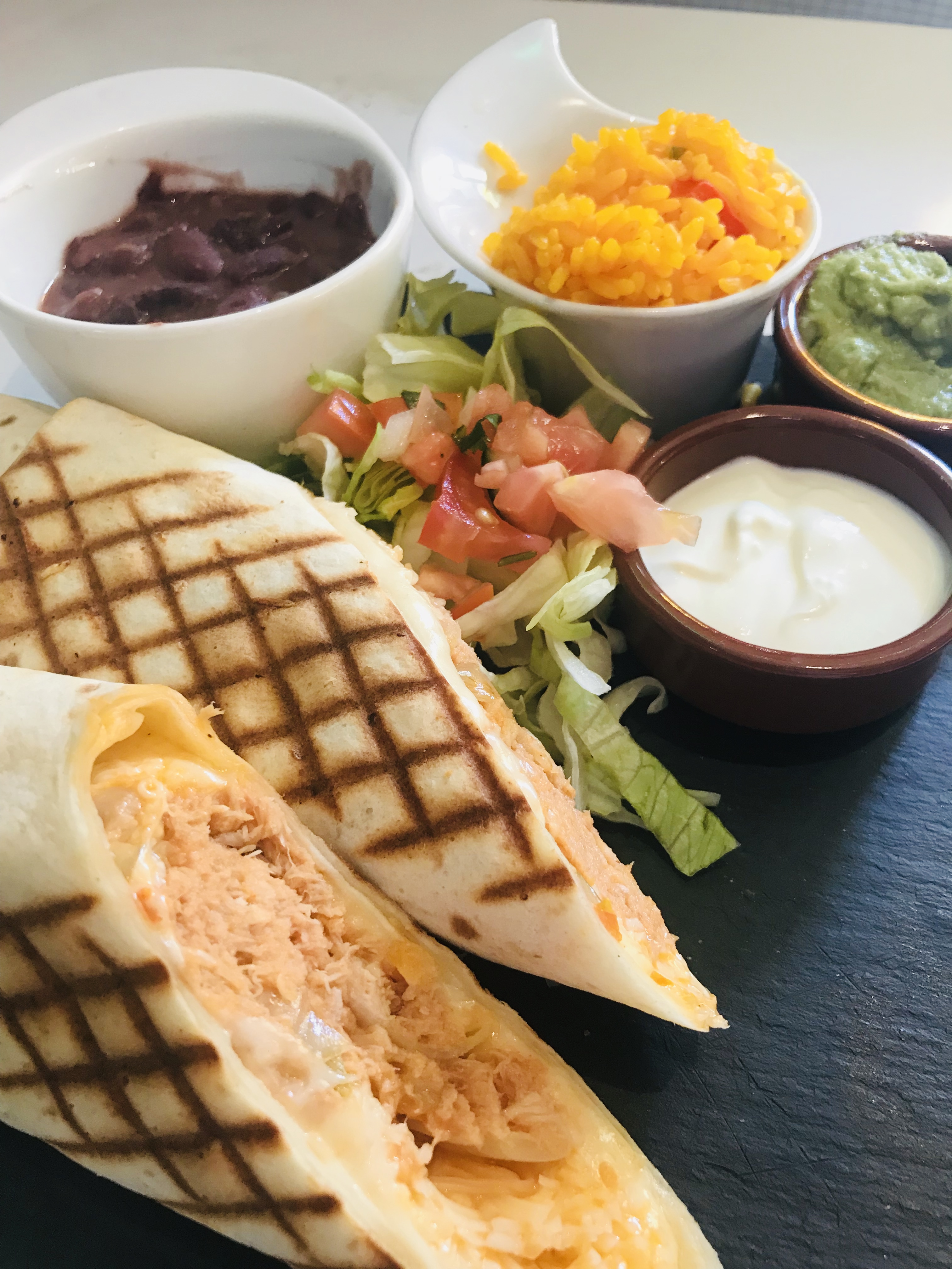 Super découverte ! Nous avons adoré les empanadas au poulet et les fajitas à composer soi-même, c’est original ! Repas copieux et délicieux
