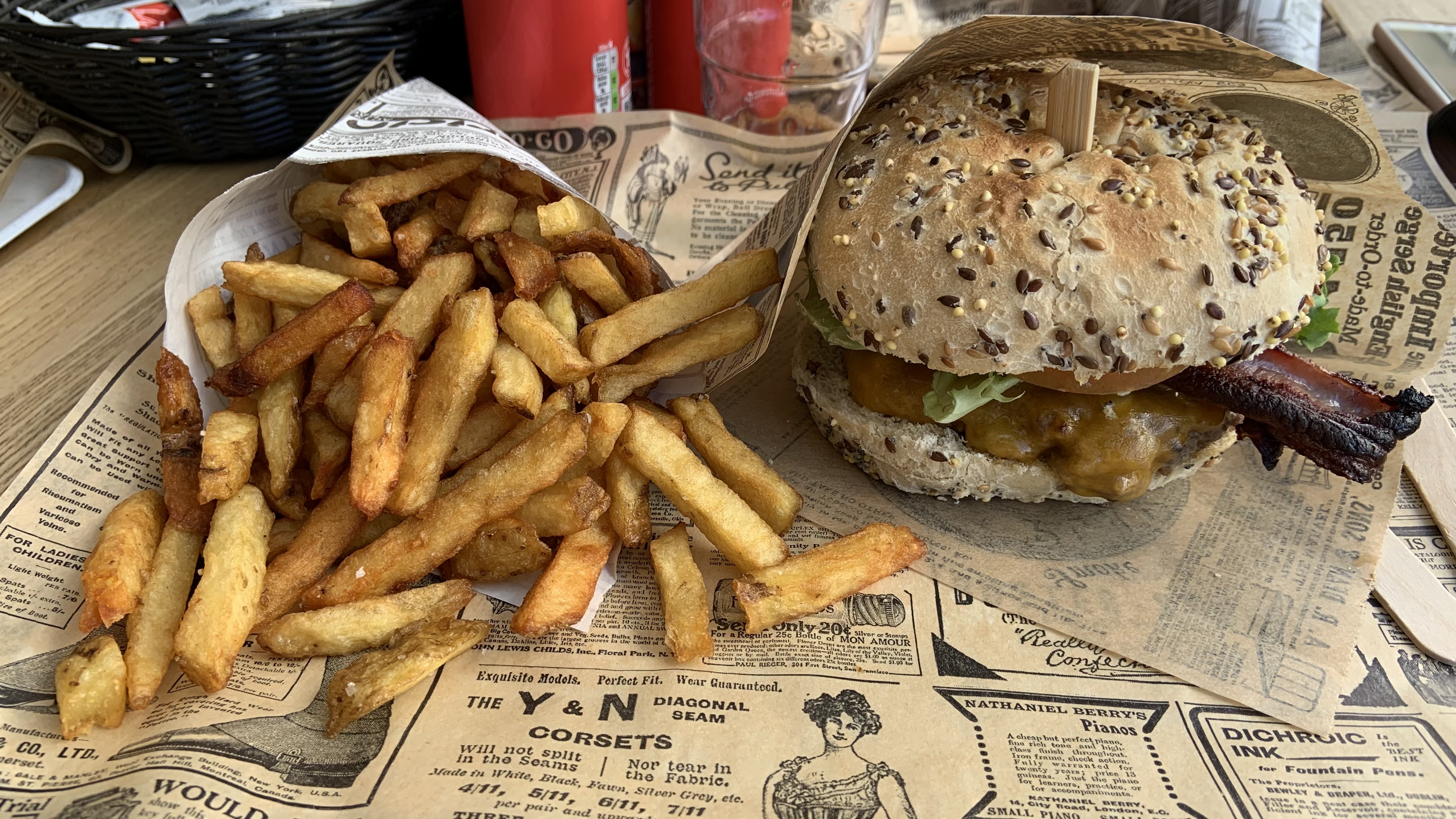 J’ai été pour le burger VG car dans le référencement il était Indiqué « recommandé pour le burger vege » et un des commentaires hyper enthousiaste à ce sujet. Mais c’est une grosse blague. Galette de pomme de terre industrielle… le reste très basique. Juste la sauce maison et des frites assez bonnes.18€ pour de la patate et un coca !! Et à 20h15 c’était plus que « à emporter » uniquement.