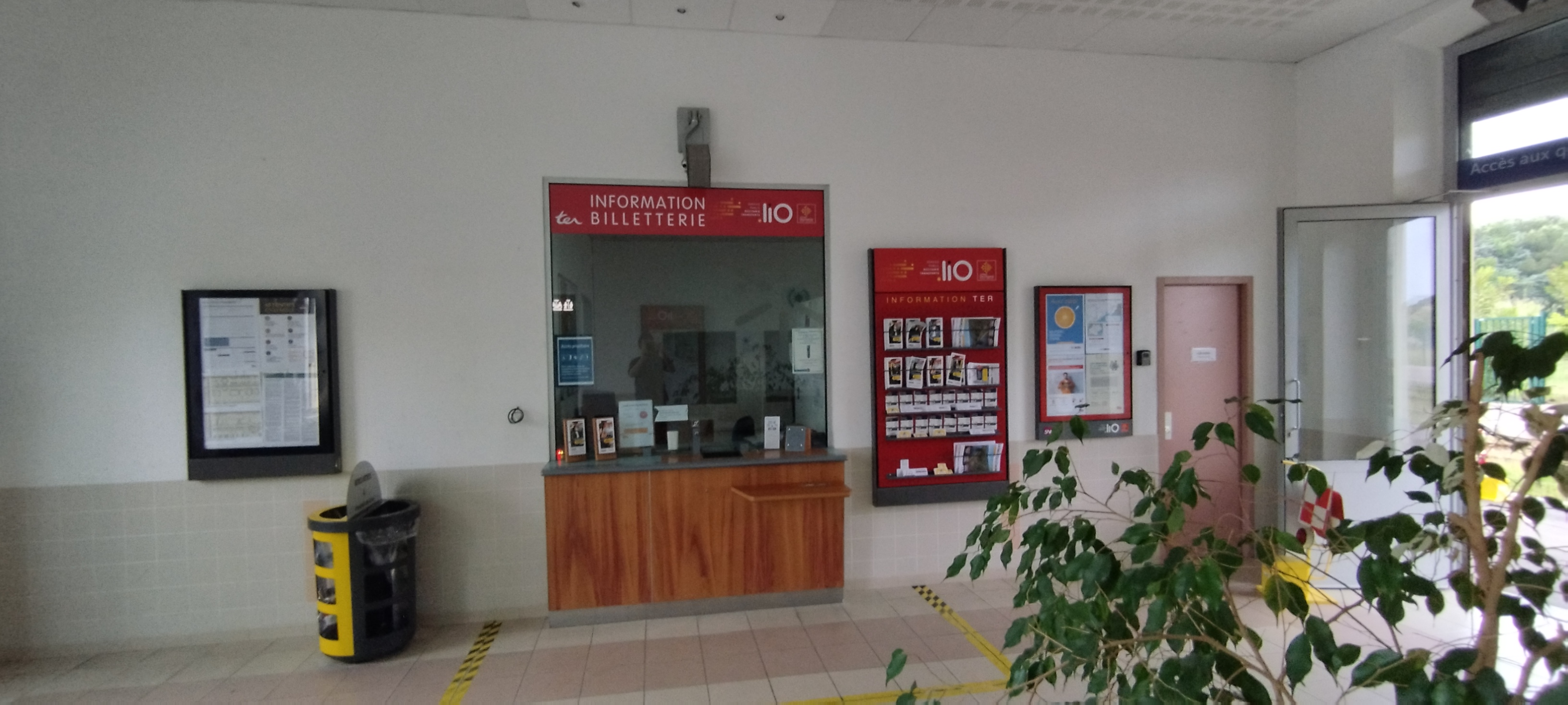 Dommage jolie petite gare SNCF (un peu à labandon) comme beaucoup de gare en France pas ou très peu dentretienChef de gare inecsistent. Personne derrière le guichet 😬😬Demande un renseignement et dans sa façon de répondre jai bien compris que je lui cassé les pieds..... bon !!!! 🥶🥶