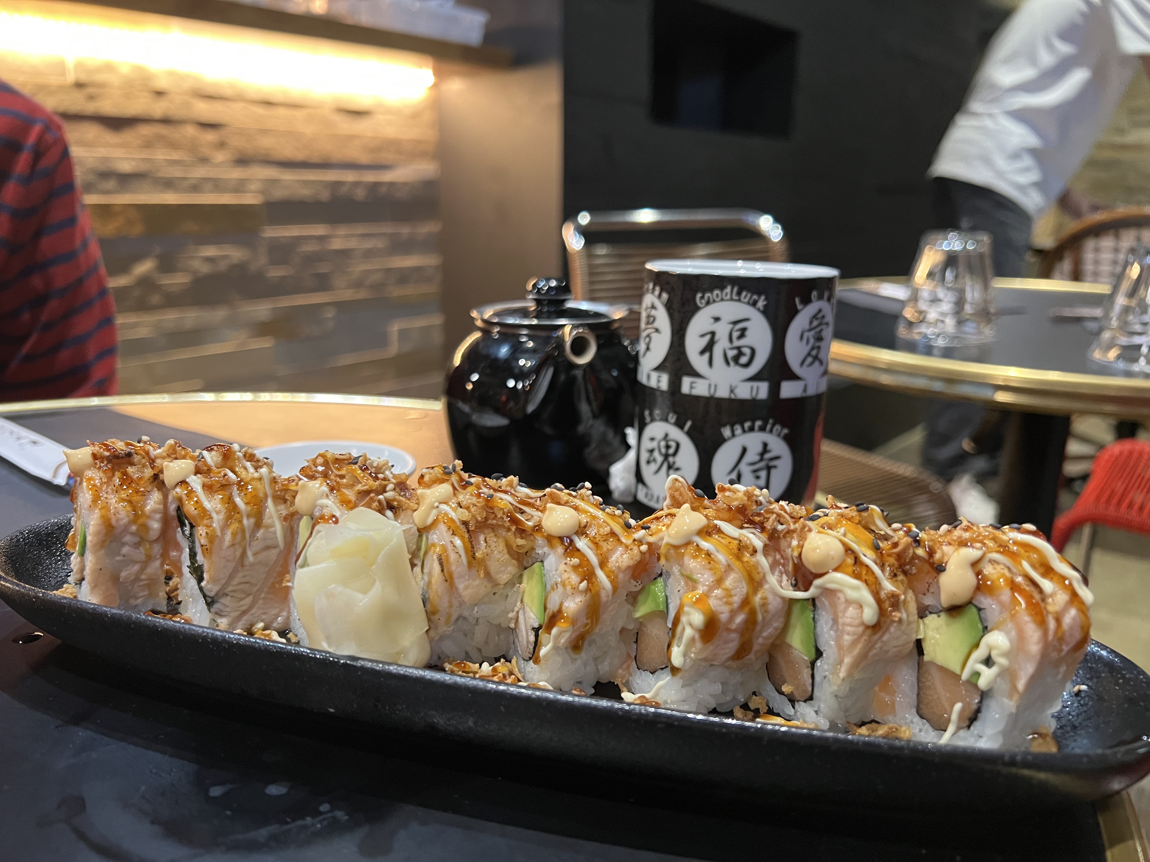 A fuir !! Et tout ça à cause du serveur ! C’est dommage car la cuisine est plutôt bonne (nous avons pris des sushis burgers) même si elle n’est pas exceptionnelle. Mais le service est horrible! Le serveur semble nonchalant et parle tout doucement ce qui fait que quand nous posons une question nous n’avons pas compris ce qu’il disait. Nous commandons 4 entrées et la mienne n’arrive jamais, on se dit tant pis, mais finalement elle arrive au moment des plats principaux et le serveur la donne à la mauvaise personne. Ensuite il se trompe pour les frites, j’avais demandé des frites de patates douces. Tout le long du repas, le serveur était devant nous debout sur son téléphone. Mais le coup de grâce a été le fait qu’il s’assoit à une table du restaurant juste derrière nous toujours à regarder son téléphone. Nous étions choqués et n’avons pas du tout trouvé ça pro. A lui seul il fait couler le restaurant (nous étions juste 7 personnes ce soir là)