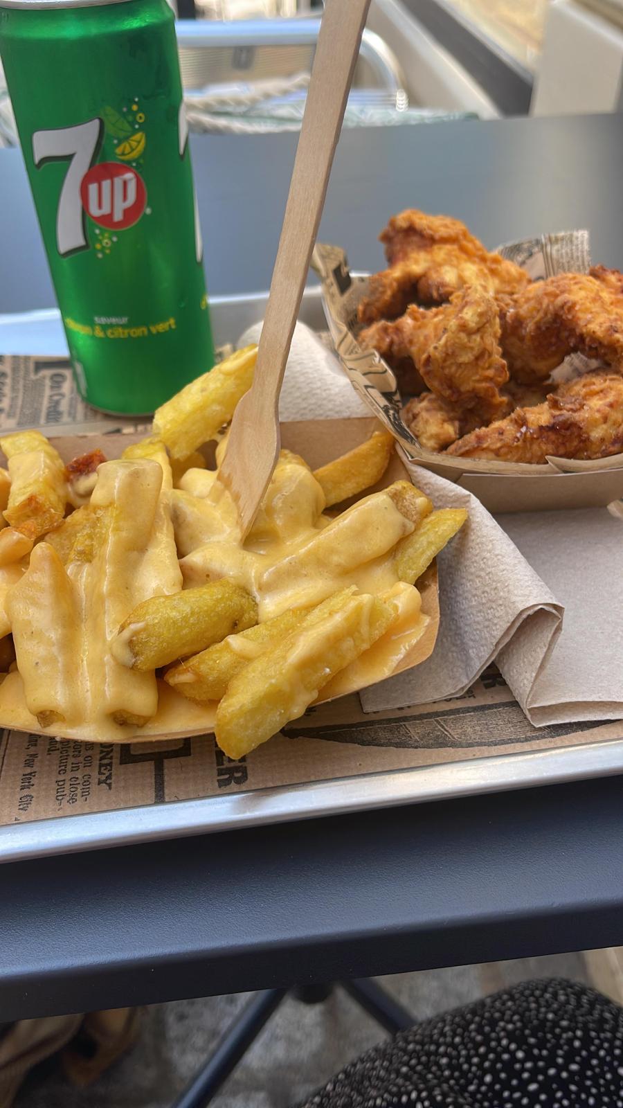 Belle découverte ce midi !Personnel gentil!Bonne cuisine : frites, tenders qui ont du goût!Playlist sympathiqueEn revanche il faisait très chaud dans le restaurant. Prévoir peut-être une clim ou un ventilateur pour les jours de canicule comme aujourd’hui.Un peu déçue du manque d’hygiène que j’ai pu observer : il vaut mieux se laver les mains régulièrement plutôt que de porter des gants qui servent à la fois à faire les burgers, récupérer les plateaux et aplatir la poubelle… dommage pour ça!