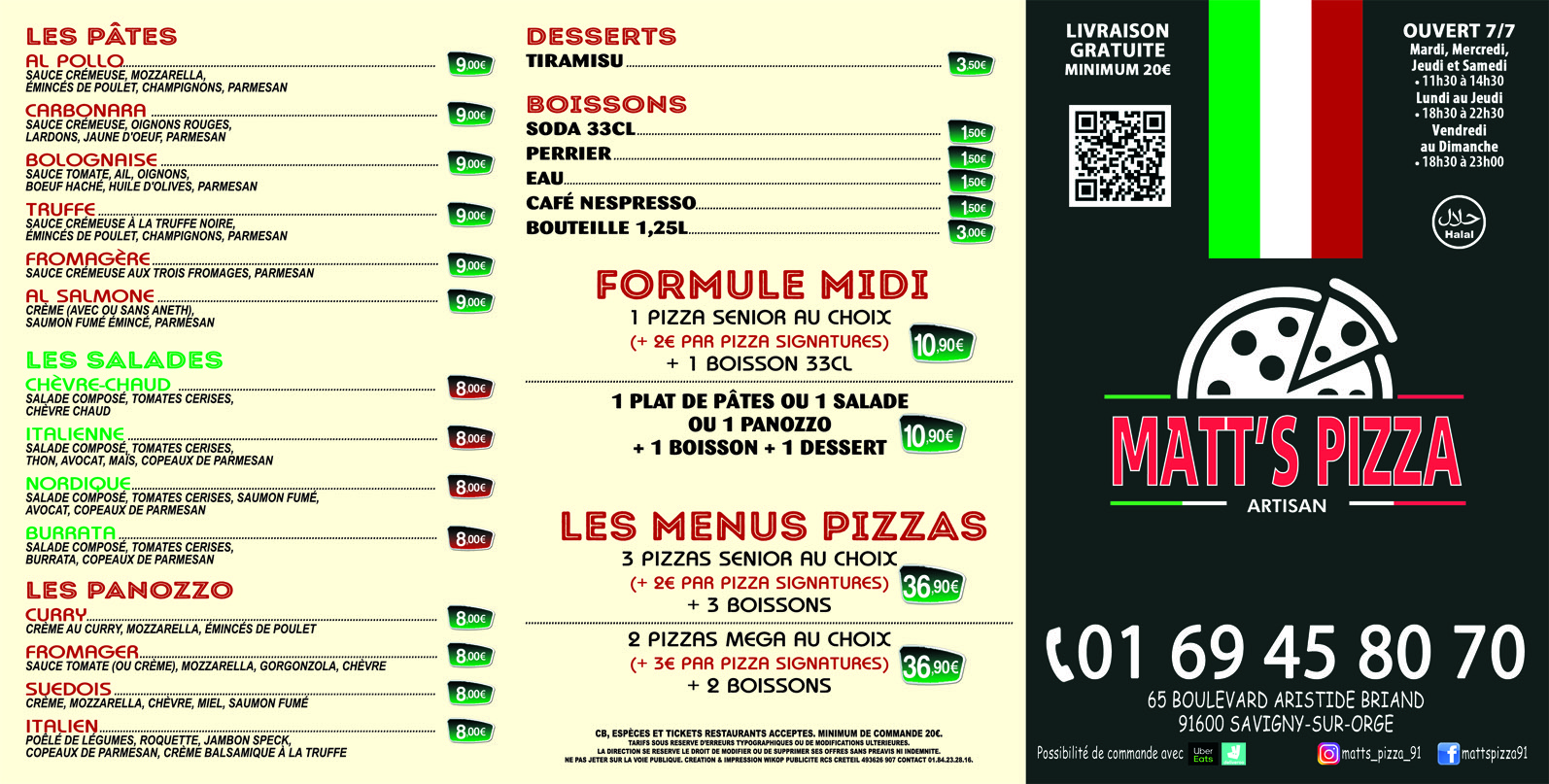 65 Bd Aristide Briand, 91600 Savigny-sur-Orge 4.70 (328 avis)Contactez Matt’s Pizza