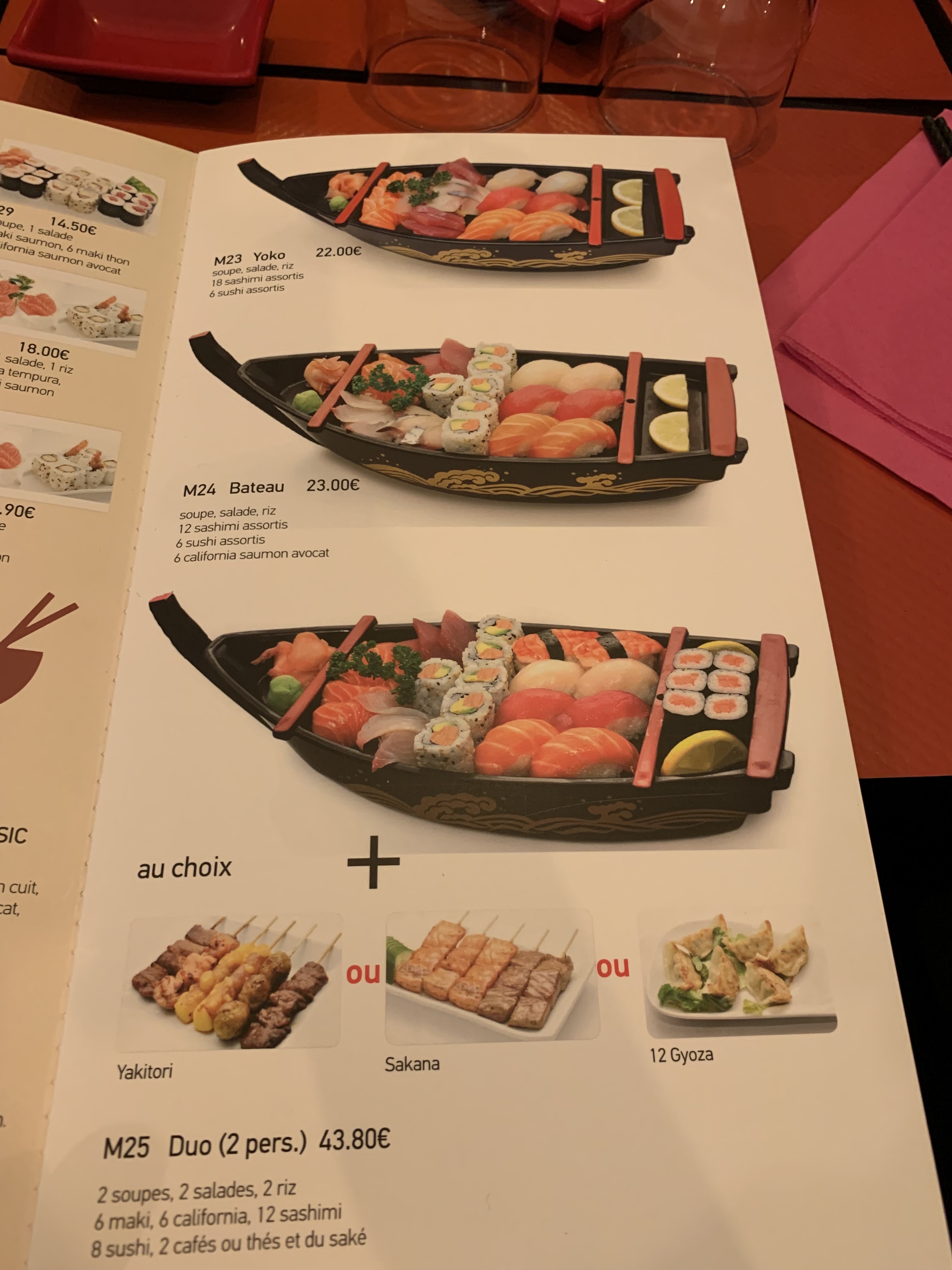 Bonjour, nous nous sommes fait livrer notre repas à domicile, nous avons eu la surprise d’avoir des brochettes qui n’étaient pas fraîches et d’autres qui n’étaient pas assez cuites (poulet). Nous avons appelé pour remonter cela aucune réaction de la part du restaurant. Concernant les sushi et Maki standards. À Rueil, on peut trouver mieux gustativement et commercialement.