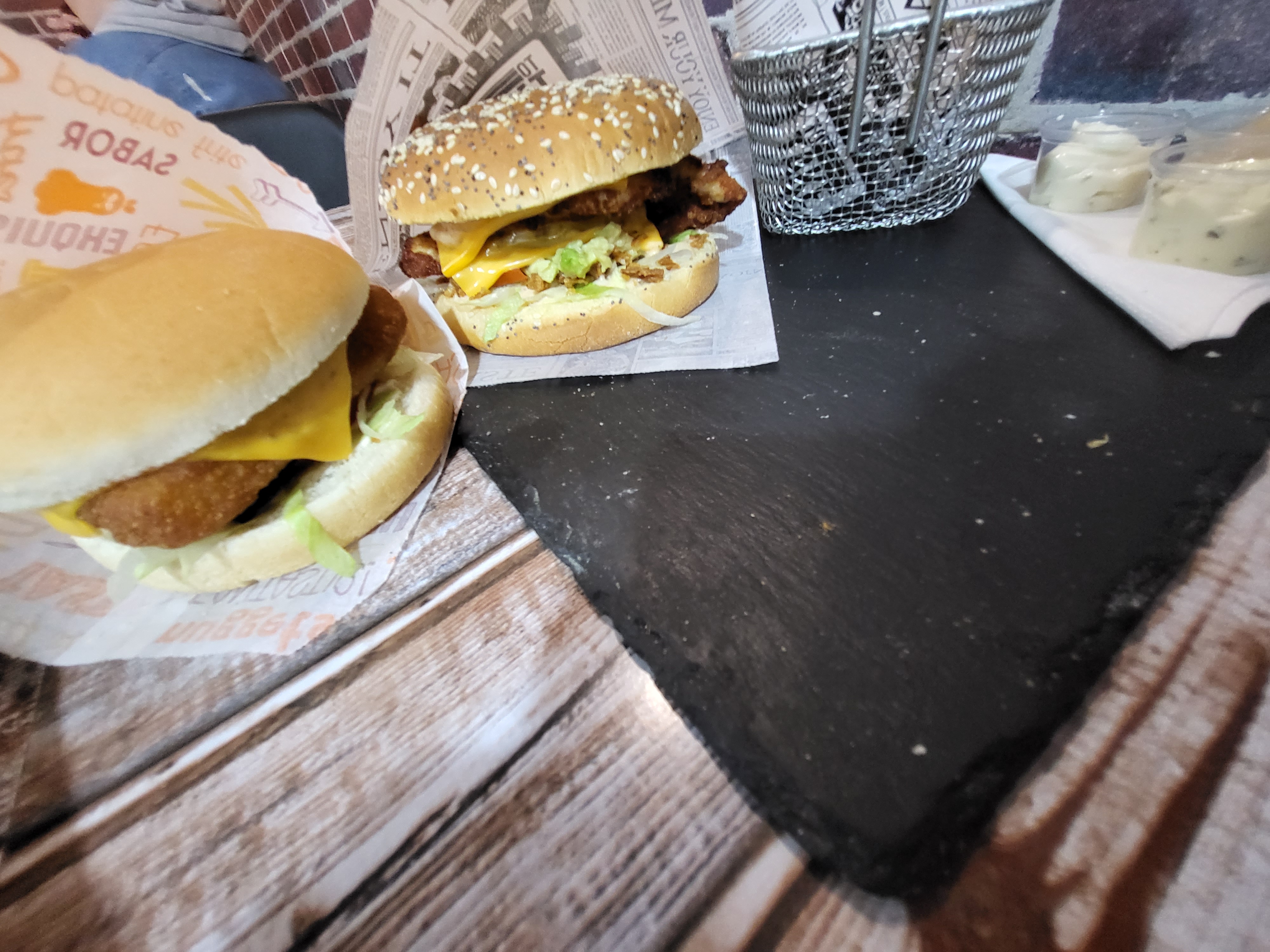Dommage, on me demande si dans mon burger je veux salade, tomate, oignons, je répond oui, j’attend sagement dans le restaurant je suis la seule cliente, préparation assez rapide. Mais dans mon sandwich je n’ai casi que du pain et de la salade, le steak est tout petit il fait à peine la moitié du pain. Le pain est très bon. Mais j’ai le sentiment d’avoir manger que de la salade de la sauce et du pain, rien d’autre. (Voir photo) les frites ne sont pas fait maison dommage mais elles n’étais pas mauvaises.Attention la vente ne se fait que sous forme de menu.