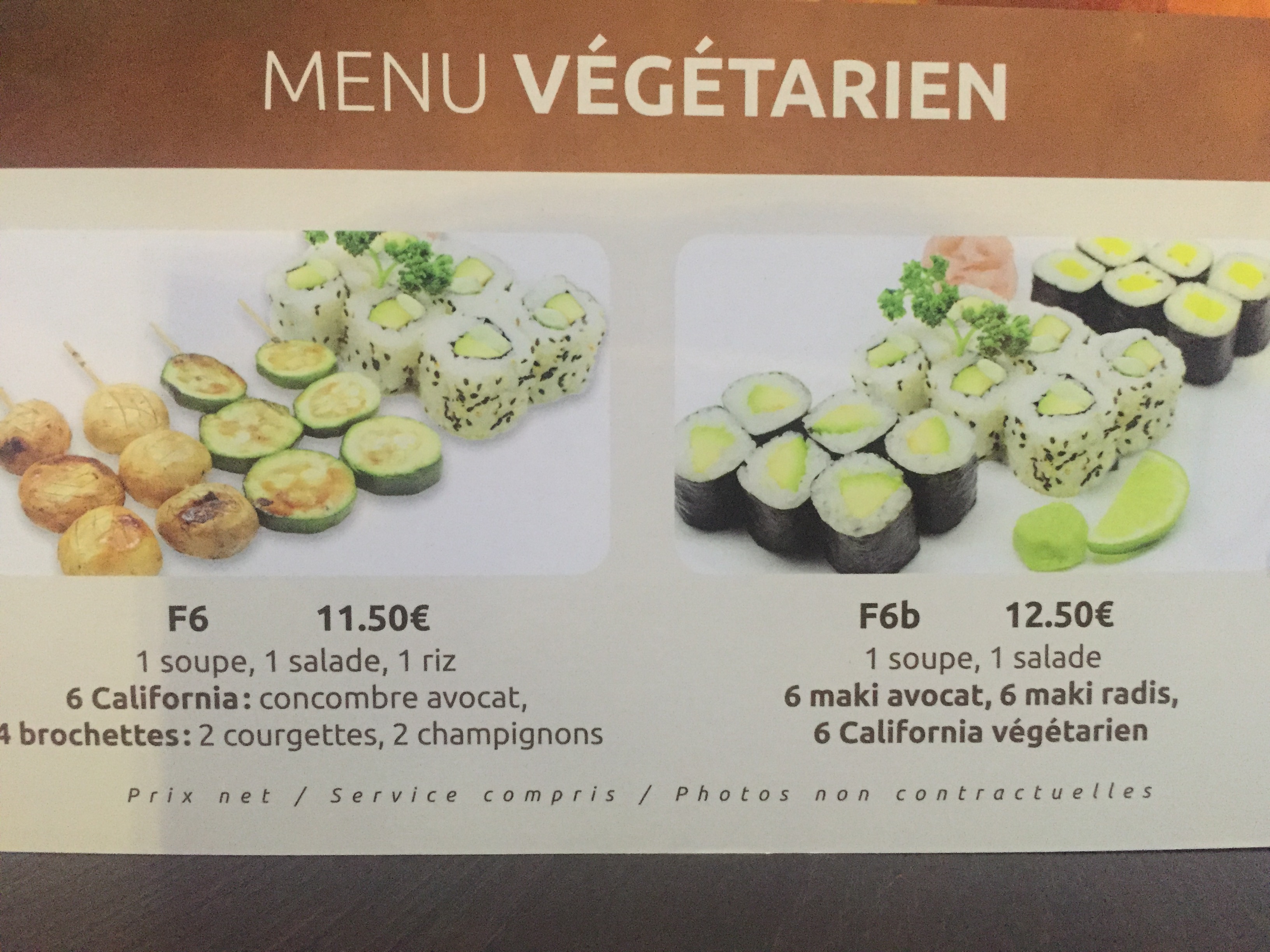 Nous avons pris plusieurs menus, cétait bon et les prix étaient corrects. Ce sont des prix assez classiques et attendus. Le service a été rapide et cétait encore chaud lorsque nous avons mangé chez nous, même si les brochettes nétaient pas très chaudes.Sinon le reste était très bien et lambiance dans le restaurant avait lair bien, calme et vue sur les cuisines.